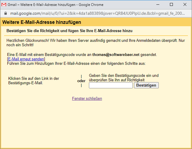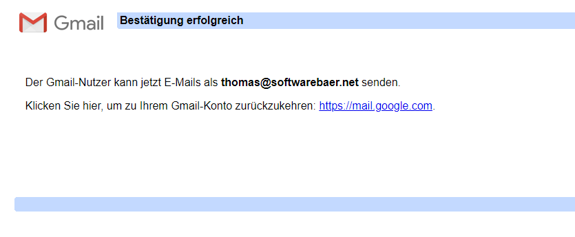 Klicke auf "Bestätigen" und die E-Mail-Adresse ist nun auch zum Versenden eingerichtet.