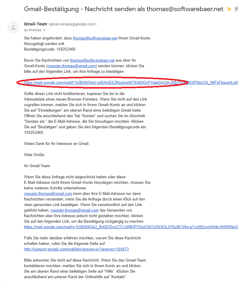 Gehe in den Posteingang von GMail. Nach wenigen Minuten erhältst du ein Mail mit einem Bestätigungslink.