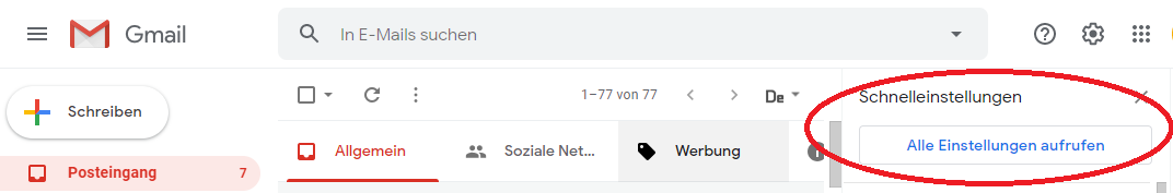 Öffne in Gmail die Einstellungen, indem du auf das Zahnrad klickst: