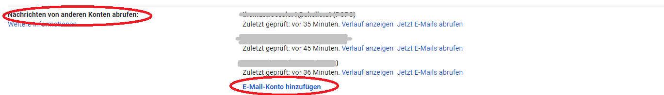 Scrolle nach unten zum Abschnitt "Nachrichten von anderen Konten abrufen" und klicke auf "E-Mail-Konto hinzufügen".
