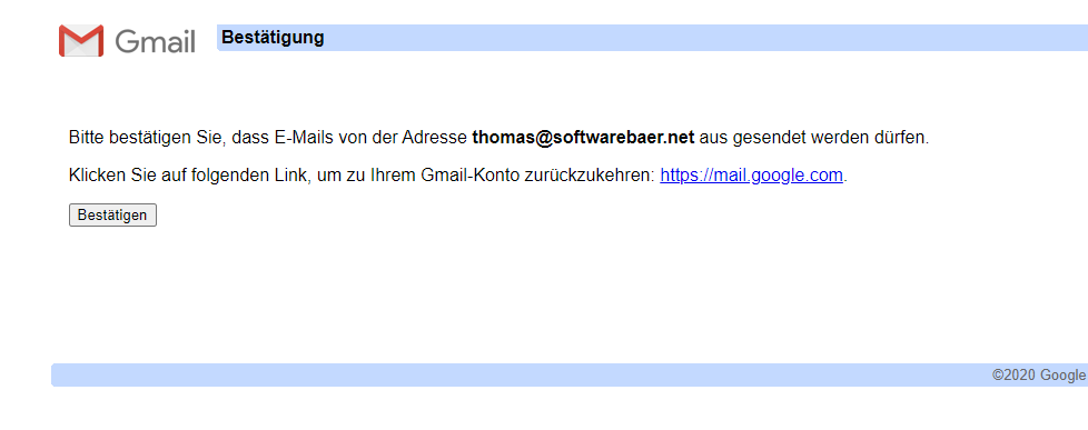 Klicke auf "Bestätigen" und die E-Mail-Adresse ist nun auch zum Versenden eingerichtet.